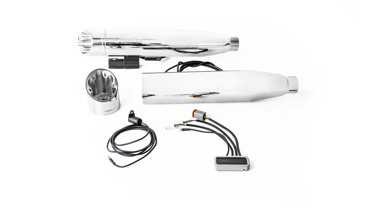 Harley-Davidson Touring, FL 3 Milwaukee Eight MY 17-20 FLHTK Ultra Limited 17- 2x CUSTOM uitlaat Ø 102 mm, zonder katalysator, verwisselbare eindkappen, met CAN-BUS bedienbaar geluidssysteem - ASC, RVS chroom, incl. EG-homologatieMet CAN-BUS aangestuurd geluidssysteem - ASC